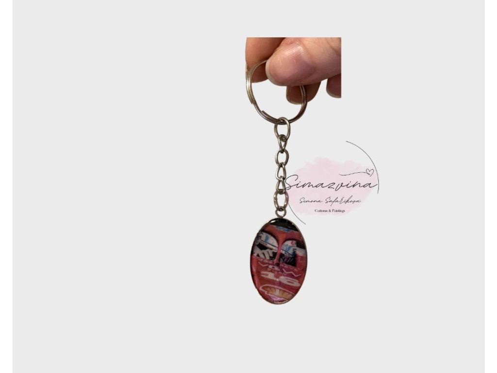 Rozměr klíčenky 30x20mm. Tištěná kopie mého obrazu zalitá pryskyřicí, vytvrzená a dekorovaná.